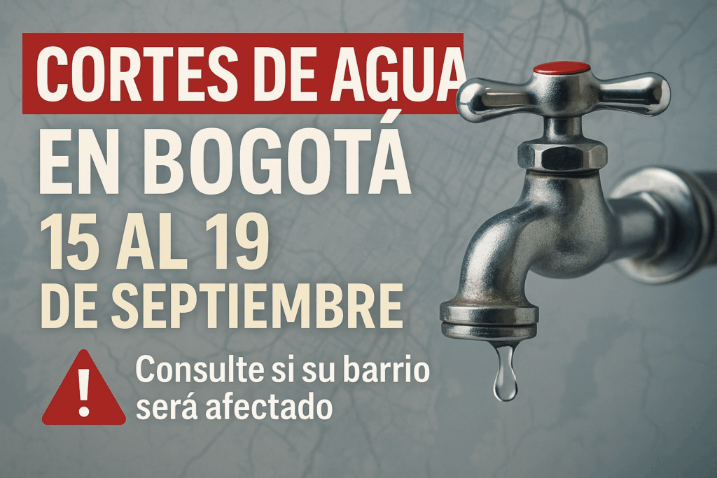 ¡OJO! Cortes de agua en Bogotá durante cinco días del 15 al 19 de septiembre: consulte si su barrio será afectado por la suspensión